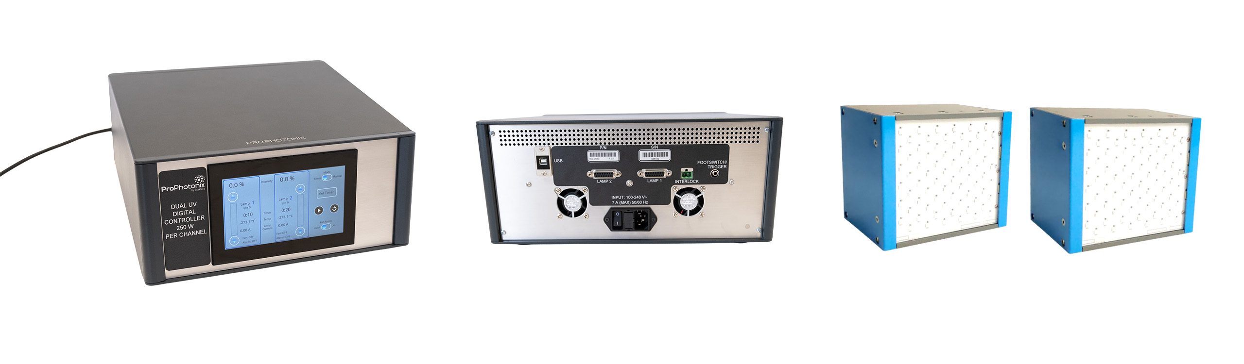 The UV Pro Test Kit provides precise digital control through its intuitive touchscreen interface, allowing users to configure intensity settings and build detailed exposure profiles tailored to their testing needs. These profiles can include ramp-up sequences, defined exposure times, and custom intensity patterns, enabling consistent and repeatable UV behavior across multiple test iterations. Automatic wavelength detection ensures safe, optimized operation for each connected light head. With an integrated design that eliminates external drivers and reduces manual setup, the system streamlines deployment and delivers stable, reliable UV performance in laboratory environments.